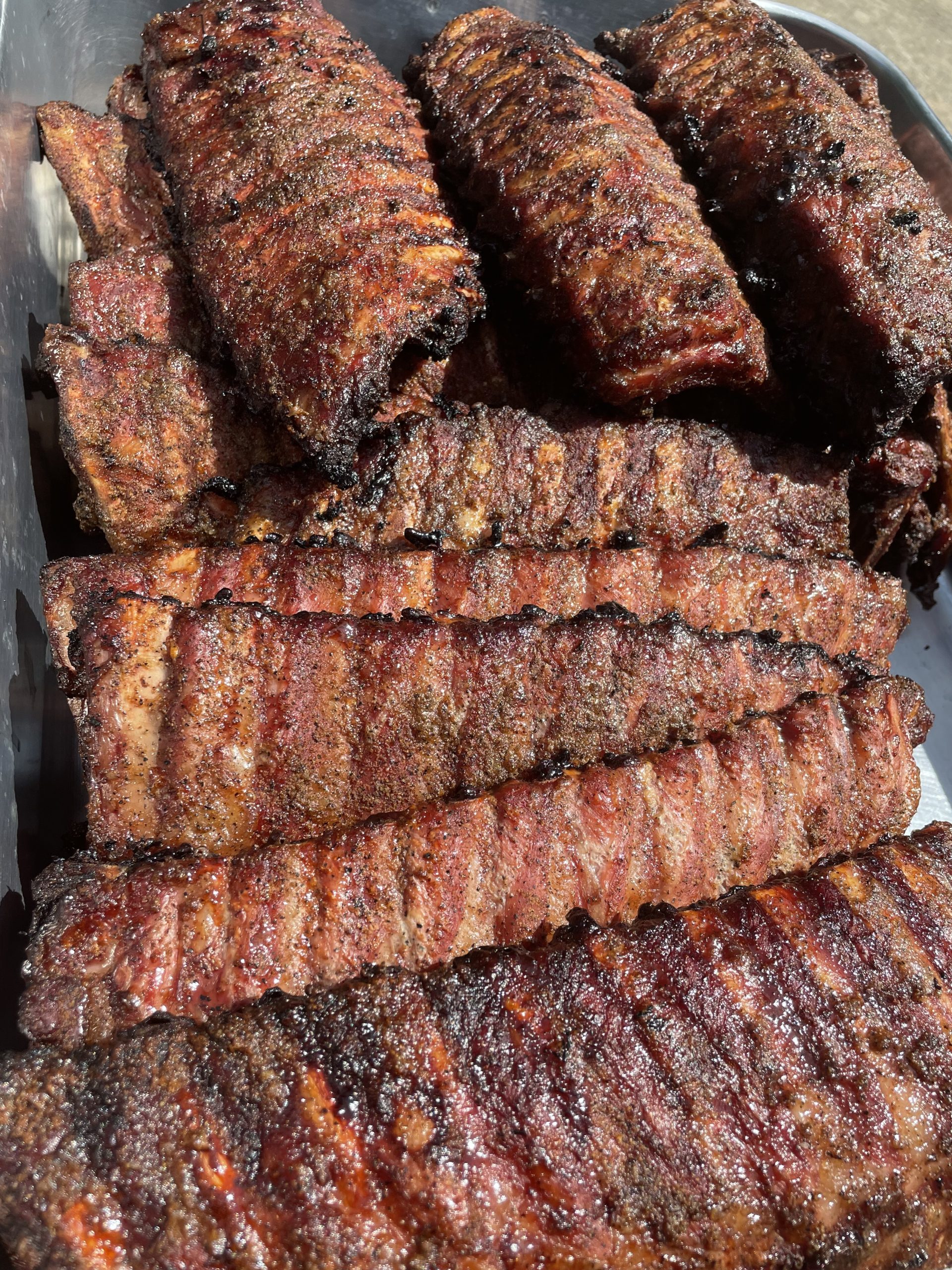 Ingredients: pork baby back ribs, cane sugar, kosher salt, granulated garlic, and black pepper