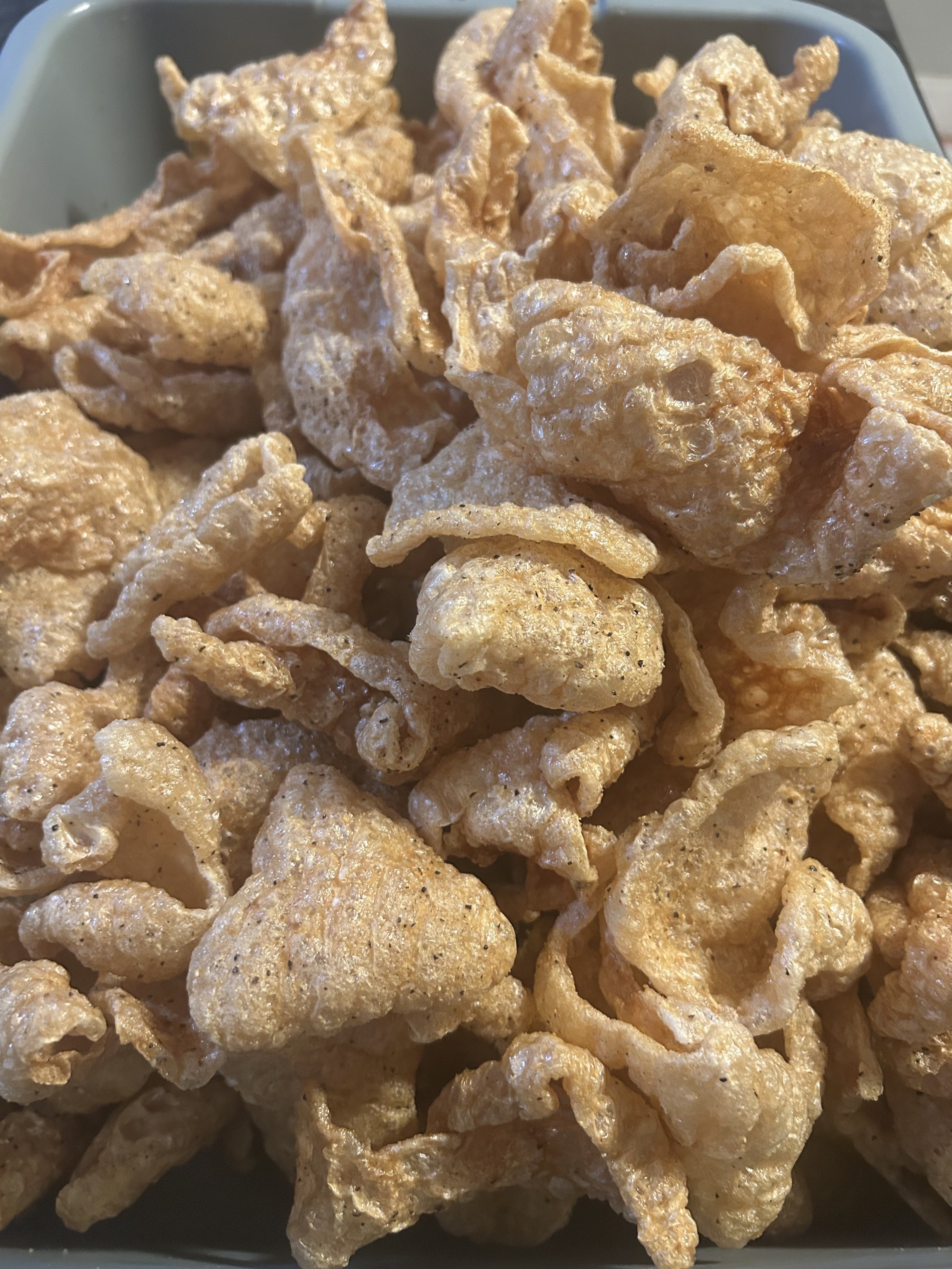 All natural pork skins, deep fried in small batches, and seasoned perfectly with our house made seasoning blends.
